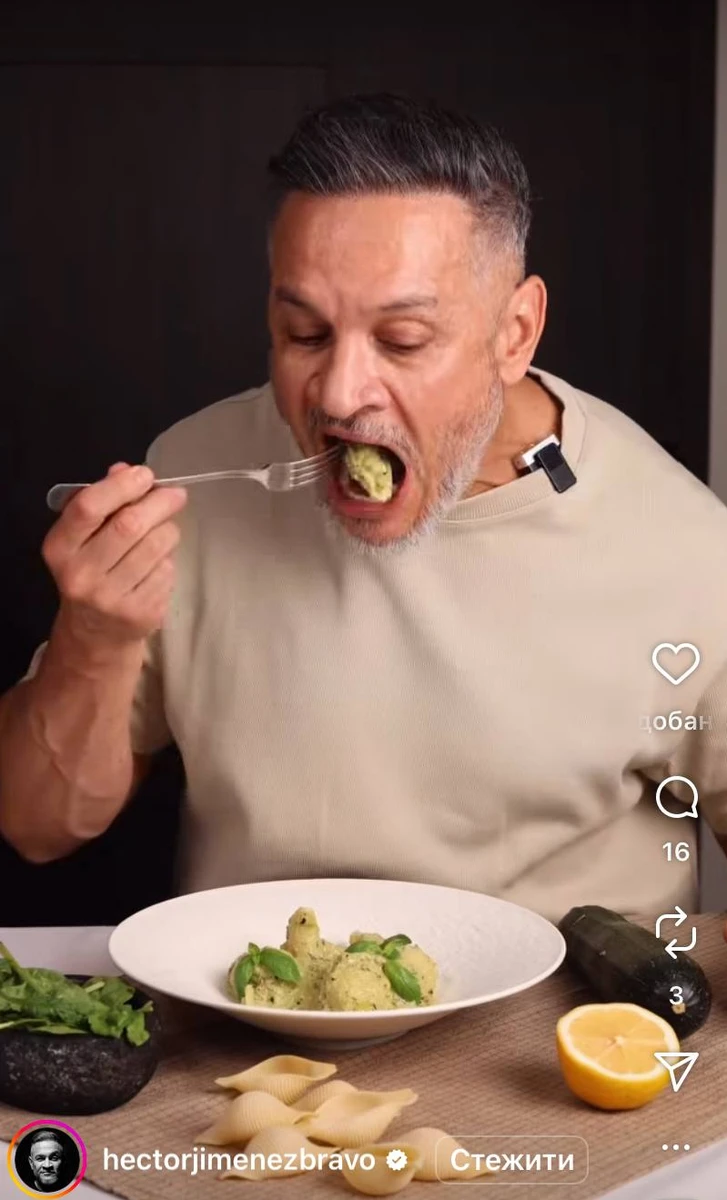 "Для смачної вечері": Хіменес-Браво показав рецепт ніжної зеленої пасти