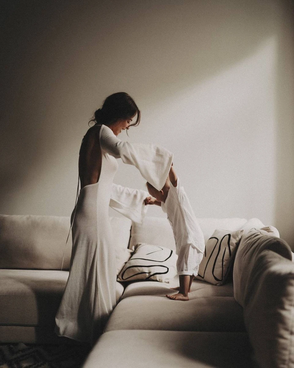 "Більше того, Лука розуміє, що це новий одяг. Він одразу його розглядає, сам міряє, біжить до дзеркала. Я ще й коментую: "Син, який ти стильовий!". Він починає усміхатись і крутитись перед дзеркалом. Видно, що йому подобається. Окрема тема – парні луки. Лука любить, коли мама одягнена схоже, як він", - розказала ексмодель.