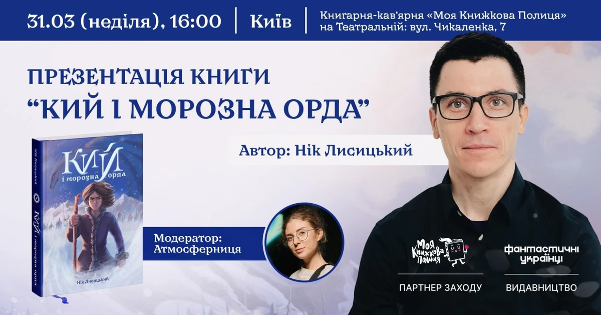 13 березня в київському просторі Видавництва Старого Лева — книгарні-кав’ярні Старого Лева на Михайлівській відбулася презентація епічного фентезі Ніка Лисицького «Кий і морозна орда», створеного за мотивами української міфології.
