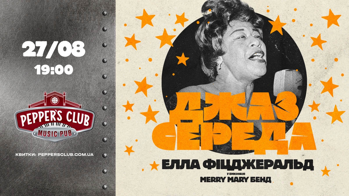 Pepper’s Club запрошує на вечір, присвячений першій леді джазу — Еллі Фітцджеральд. Її легендарні композиції Lady Be Good, How High The Moon, Lush Life та інші прозвучать у живому виконанні гурту Merry Mary Band.