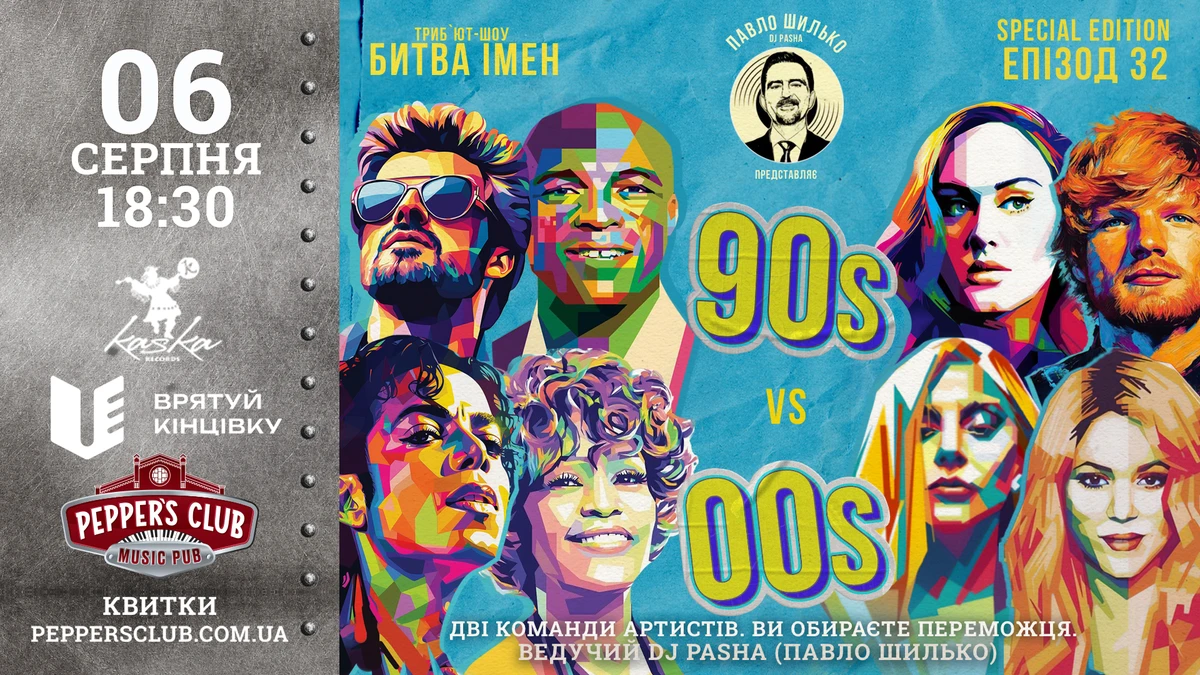 У серпні Pepper’s Club запрошує на новий концертний батл від шоумена Павла Шилька (DJ Паші), де зійдуться дві культові епохи: емоційні 90-ті й експресивні 2000-ні. На сцені — дві команди українських артистів, які наживо виконають хіти легендарних виконавців: від Whitney Houston, Michael Jackson і Seal до Adele, Lady Gaga й Ed Sheeran.