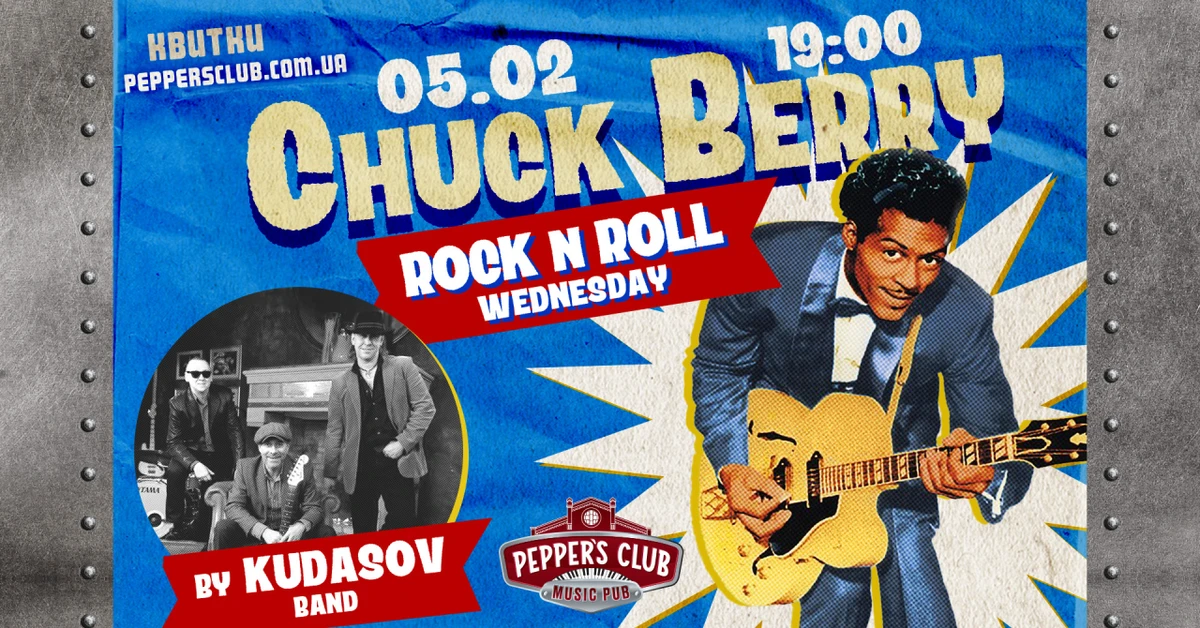 Вечір, присвячений легендарному Чаку Бері, "батькові рок-н-ролу". Віртуозне виконання його хітів, таких як "Johnny B. Goode" та "You Never Can Tell", створить атмосферу бугі-вугі та енергійних танців, а талановитий Kudasov Band подарує неповторний музичний досвід.