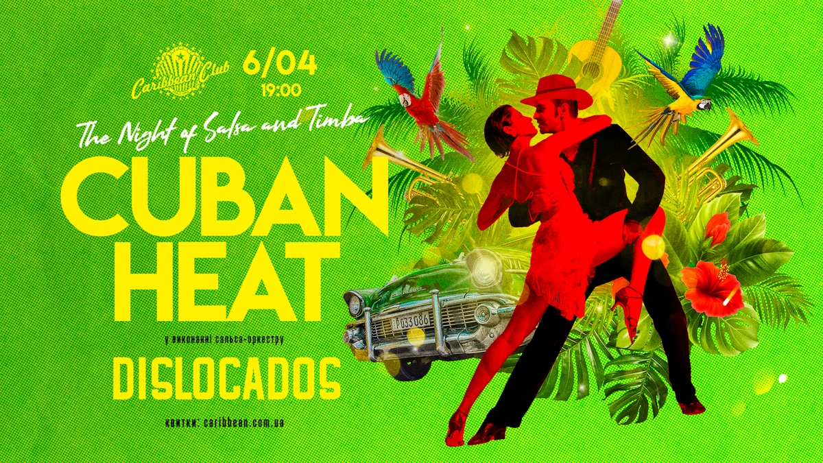 "Cuban Heat: The Night of Salsa and Timba" — відкриває серію подій до 20-річчя першого українського сальса-оркестру Dislocados. Концерт у співпраці з Timba Fest поєднає кубинські ритми та українську пристрасть. В програмі — виступ гурту Dislocados, танцювальні майстер-класи, особлива святкова атмосфера та багато сюрпризів для вечора, що заряджає ритмом і драйвом.