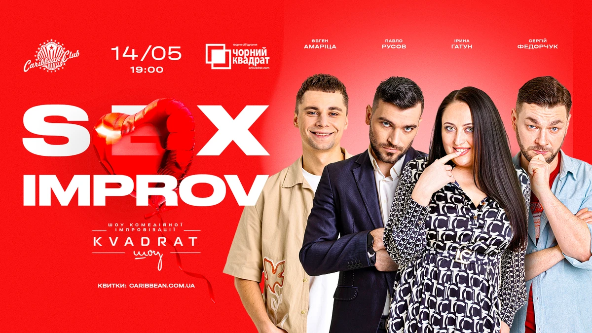 Шоу SEX Improv від Kvadrat шоу — комедійна імпровізація, де глядачі стають творцями вистави. Участь у шоу візьмуть майстри театру "Чорний квадрат" — Ірина Гатун, Сергій Федорчук, Павло Русов, Євген Амаріца.