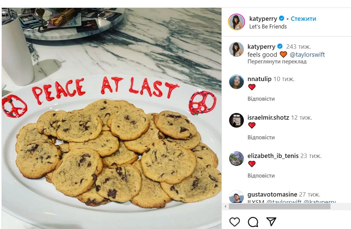 За рік Перрі зробила багатозначну публікацію у своєму Instagram з написом "Нарешті мир" і була позначка сторінки Тейлор.