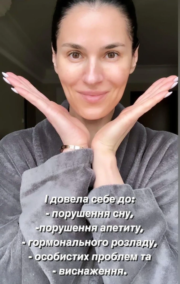 Про це вона повідомила у сторіс Instagram, показавшись без мейку та зізнавшись, що довела себе до виснаження.