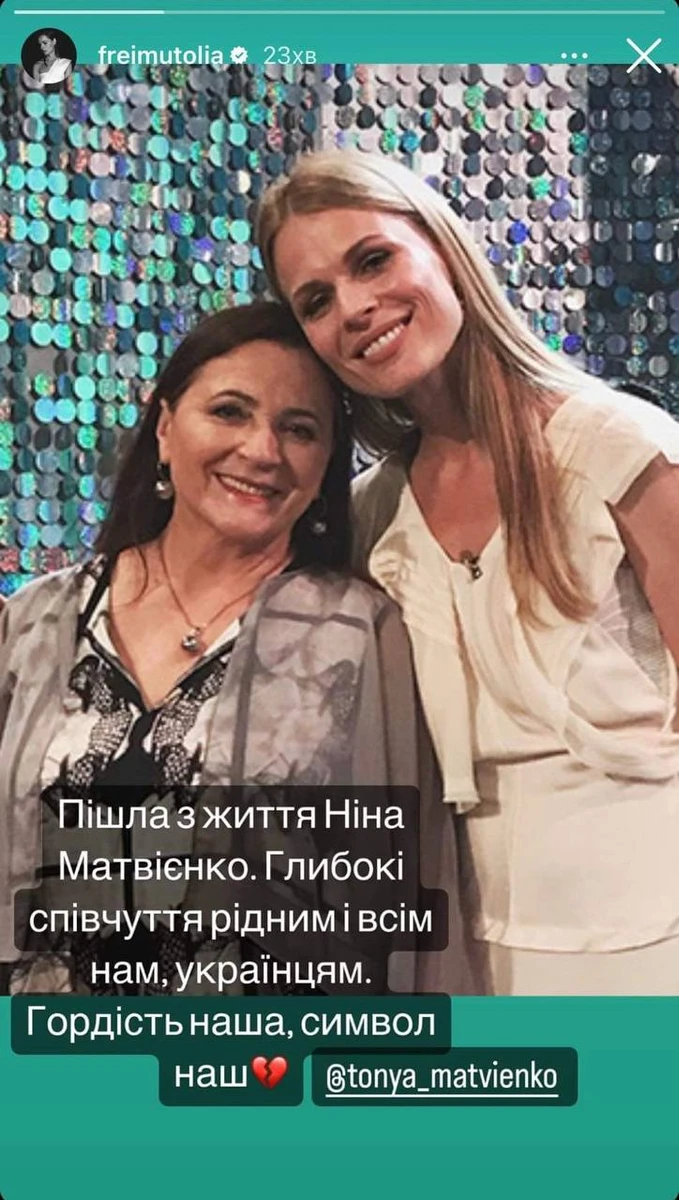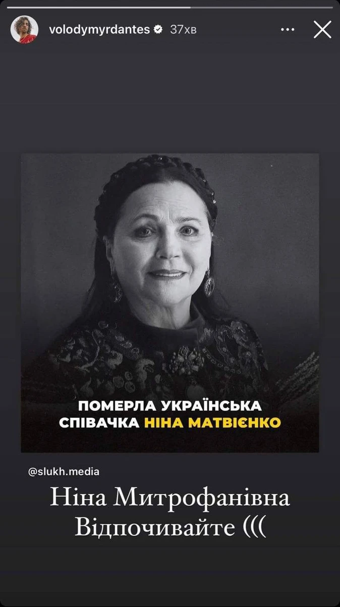 "Ніна Митрофанівна Матвієнко… Для всіх нас її Голосом співала сама Україна… Велика Повага і Подяка за все! Вічна і Світла Памʼять Прекрасній Людині!…" - написав співак Юрко Юрченко.