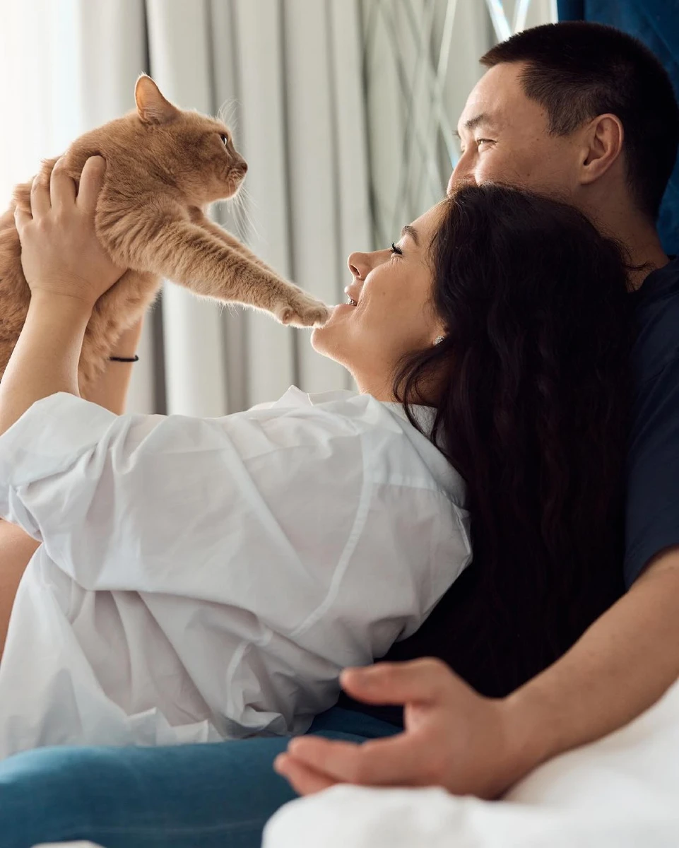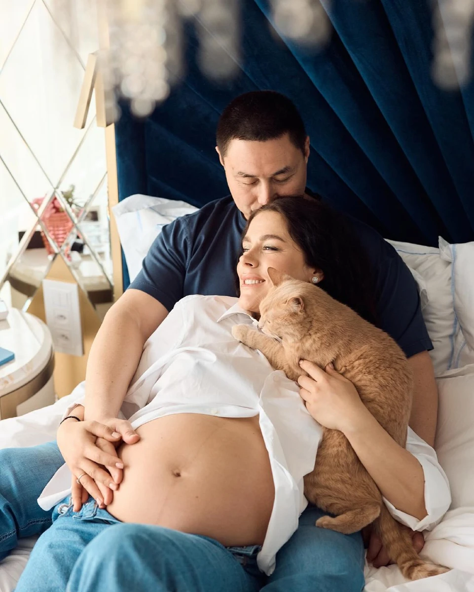 Вагітна Онуфрійчук із оголеним животом знялася в ліжку з чоловіком, котом та знімком УЗД