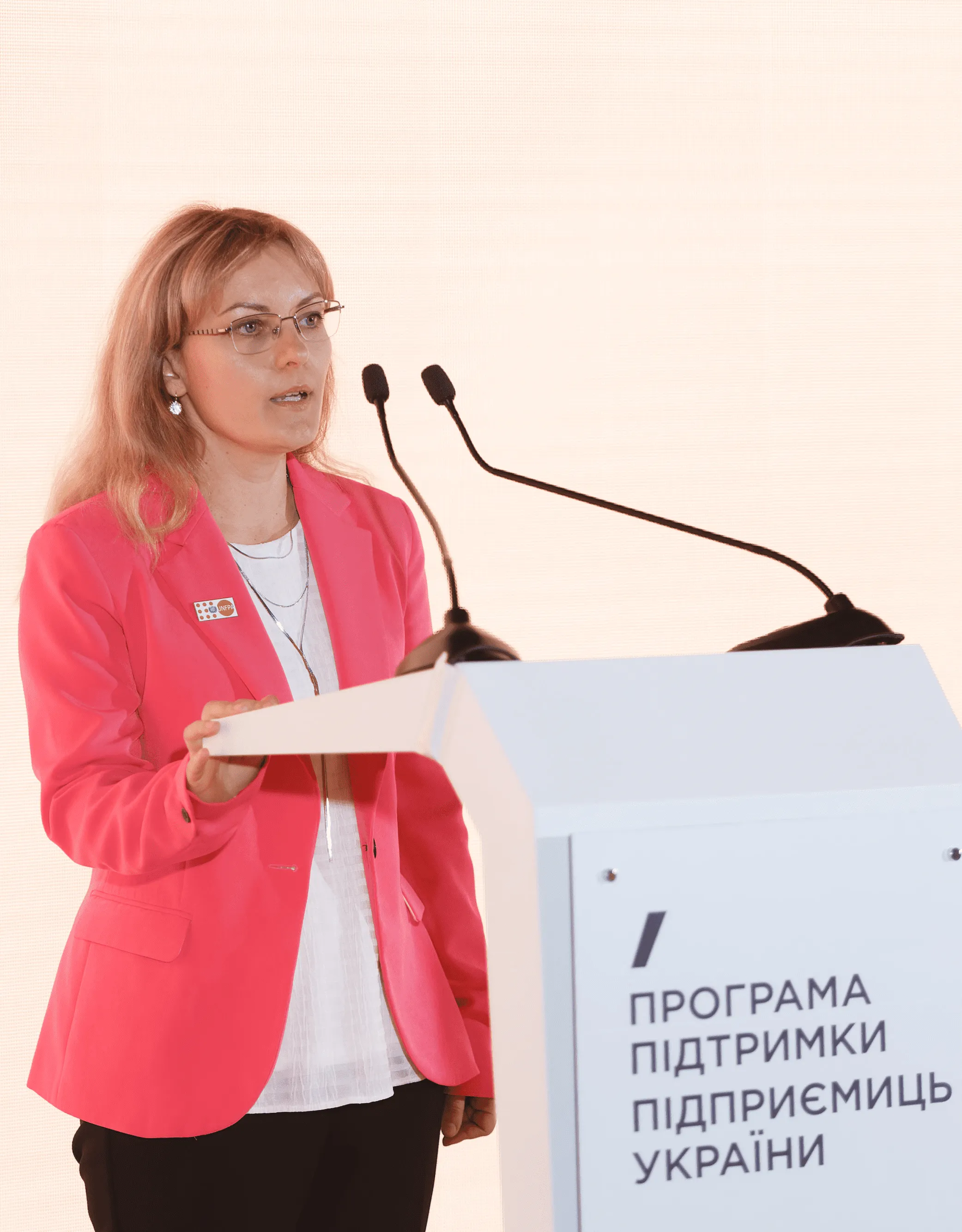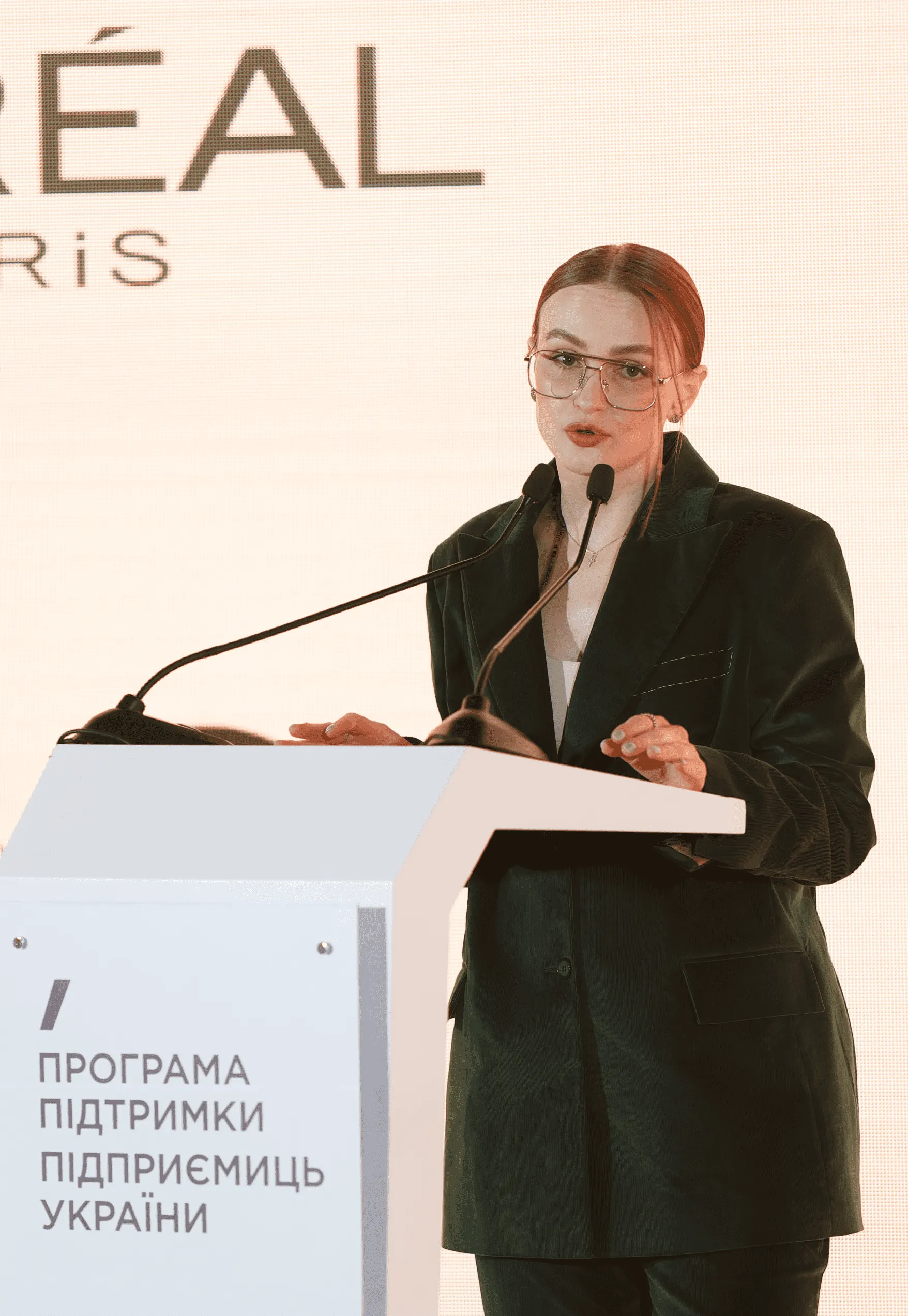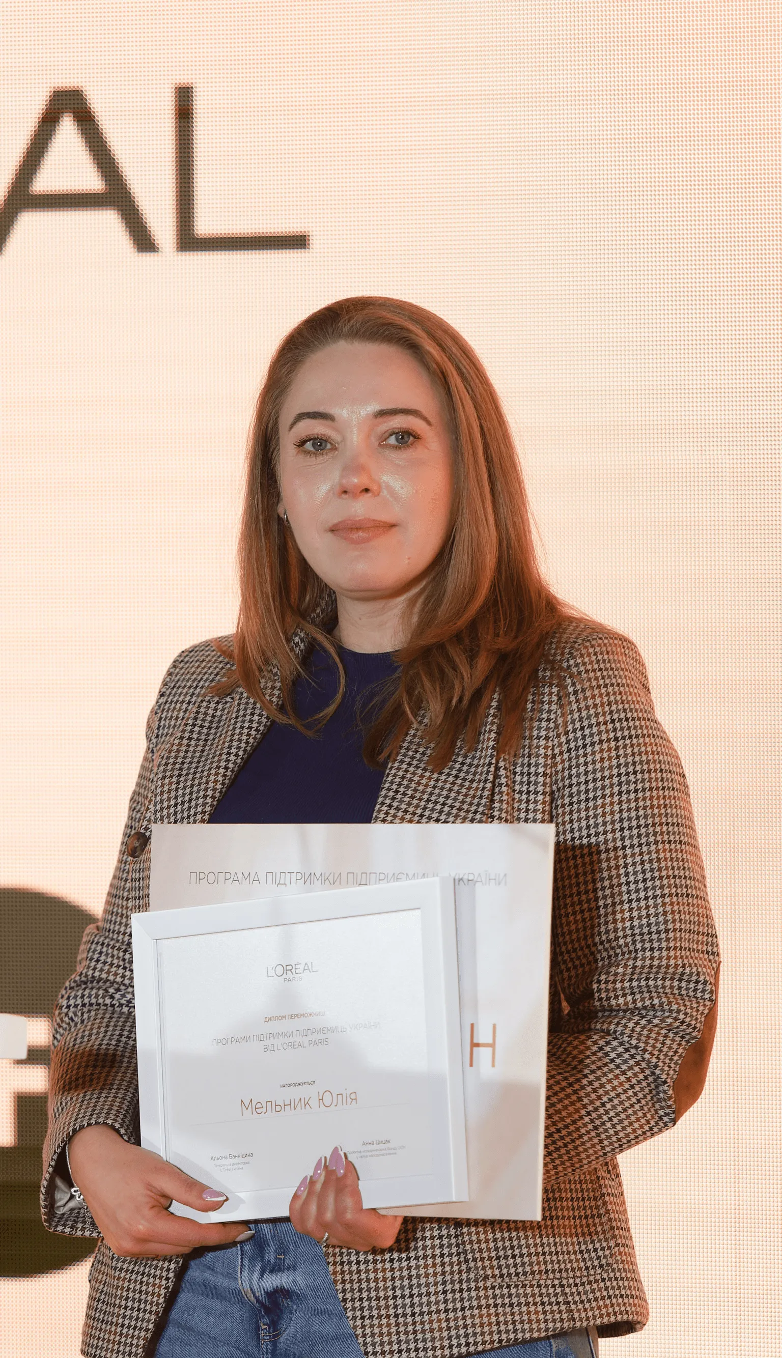 Юлія Мельник – працює з натуральним каменем будівельного призначення. Її проєкт – виготовлення виробів з граніту для благоустрою територій та автомобільних шляхів. Її мета – виробляти тактильні та термооброблені плити для тротуарів і проїжджої частини. Вони мають шершаву поверхню, що зменшує ризик ковзання взуття після опадів. А тактильні плити мають опуклу поверхню, тож допомагають людям з порушеннями зору відчувати себе вільніше та безпечніше.