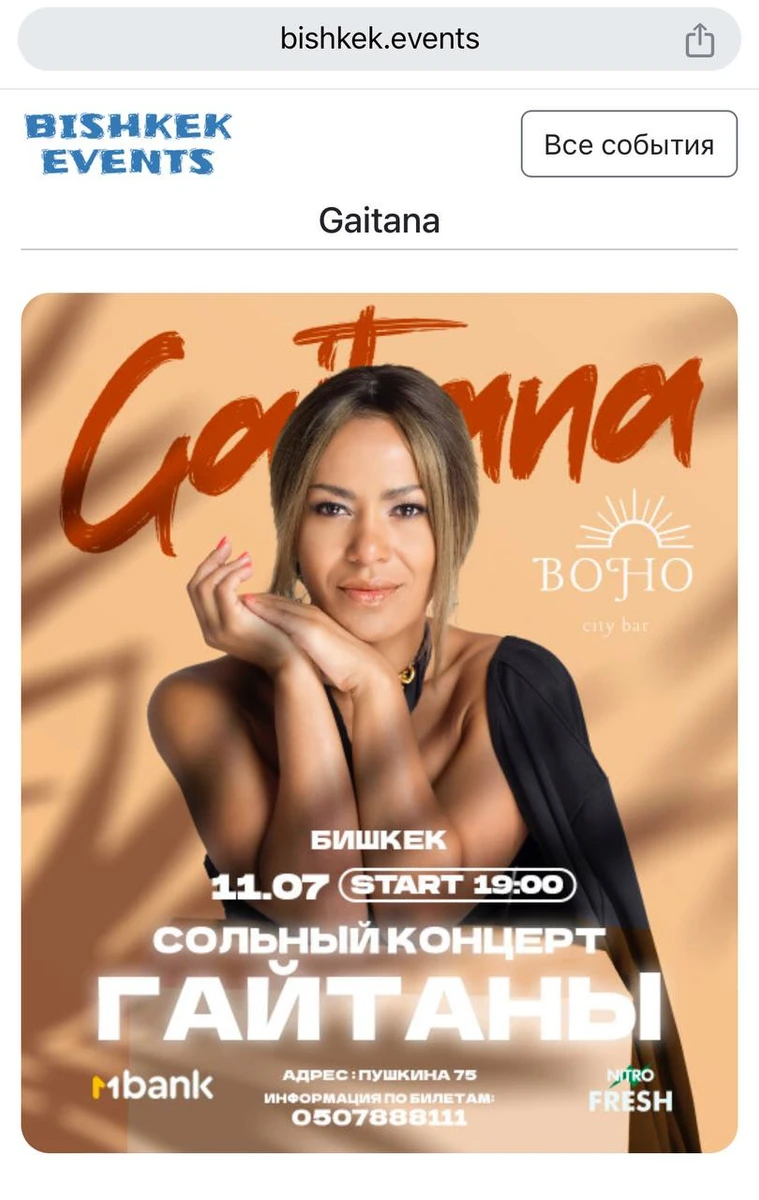 Співачка Гайтана 11-го липня виступила з російськомовними піснями у Бішкеку, столиці Киргизстану.