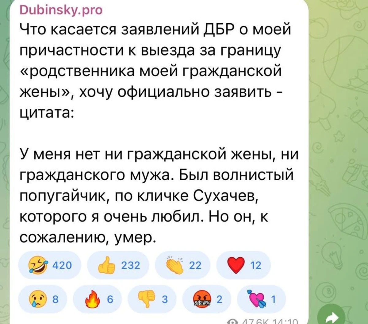 Як заявив сам Дубінський у Telegram, він не має ані цивільної дружини, ані цивільного чоловіка.