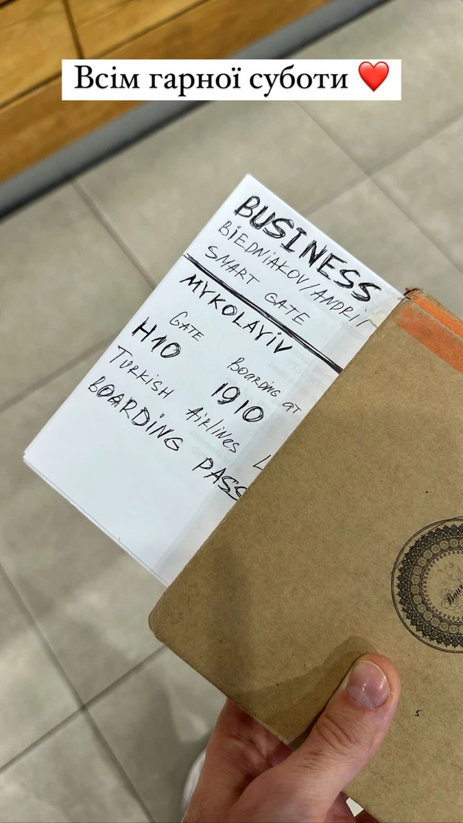 Взявся тролити Потапа і його колега. Так, шоумен Андрій Бєдняков опублікував у своїх сторіс намальовану від руки копію квитка, як у Потапа, але на рейс бізнес-класу, який летить до Миколаєва.